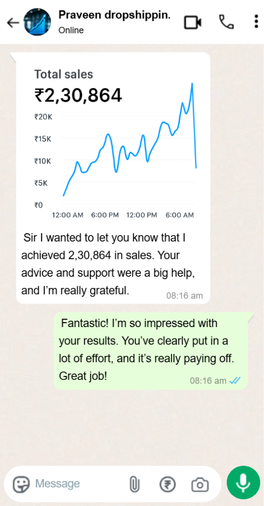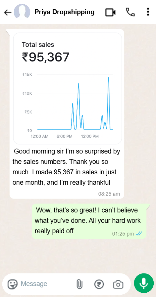 ಡ್ರಾಪ್ಶಿಪಿಂಗ್ ಕೋರ್ಸ್ನಿಂದ ನನಗೆ ಬಹಳ ಸಹಾಯವಾಯಿತು. ನಾನು ಈಗ ನನ್ನ ಆನ್ಲೈನ್ ಸ್ಟೋರ್ ಯಶಸ್ವಿಯಾಗಿ ನಡೆಸುತ್ತಿದ್ದೇನೆ.